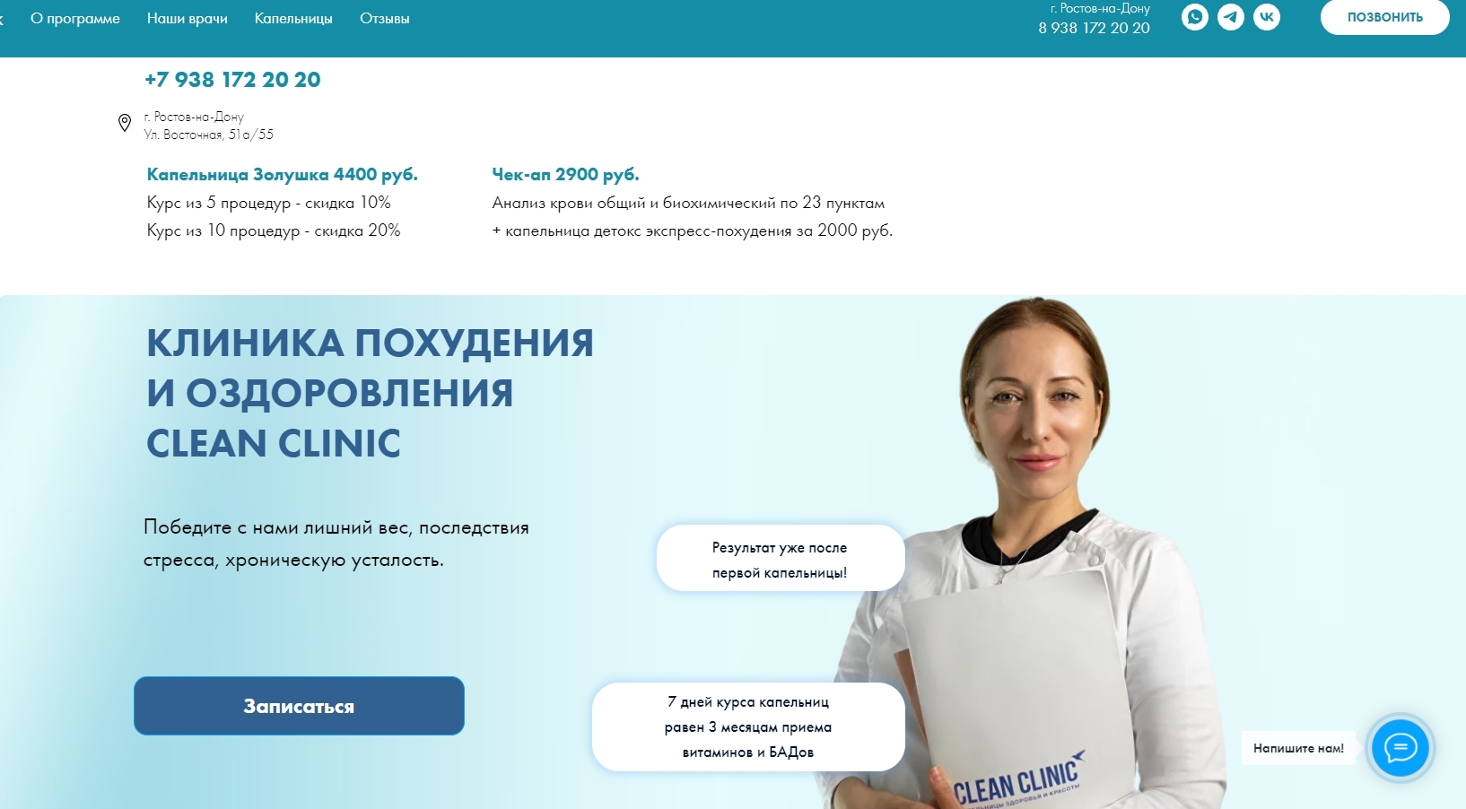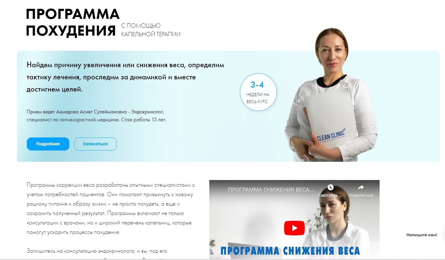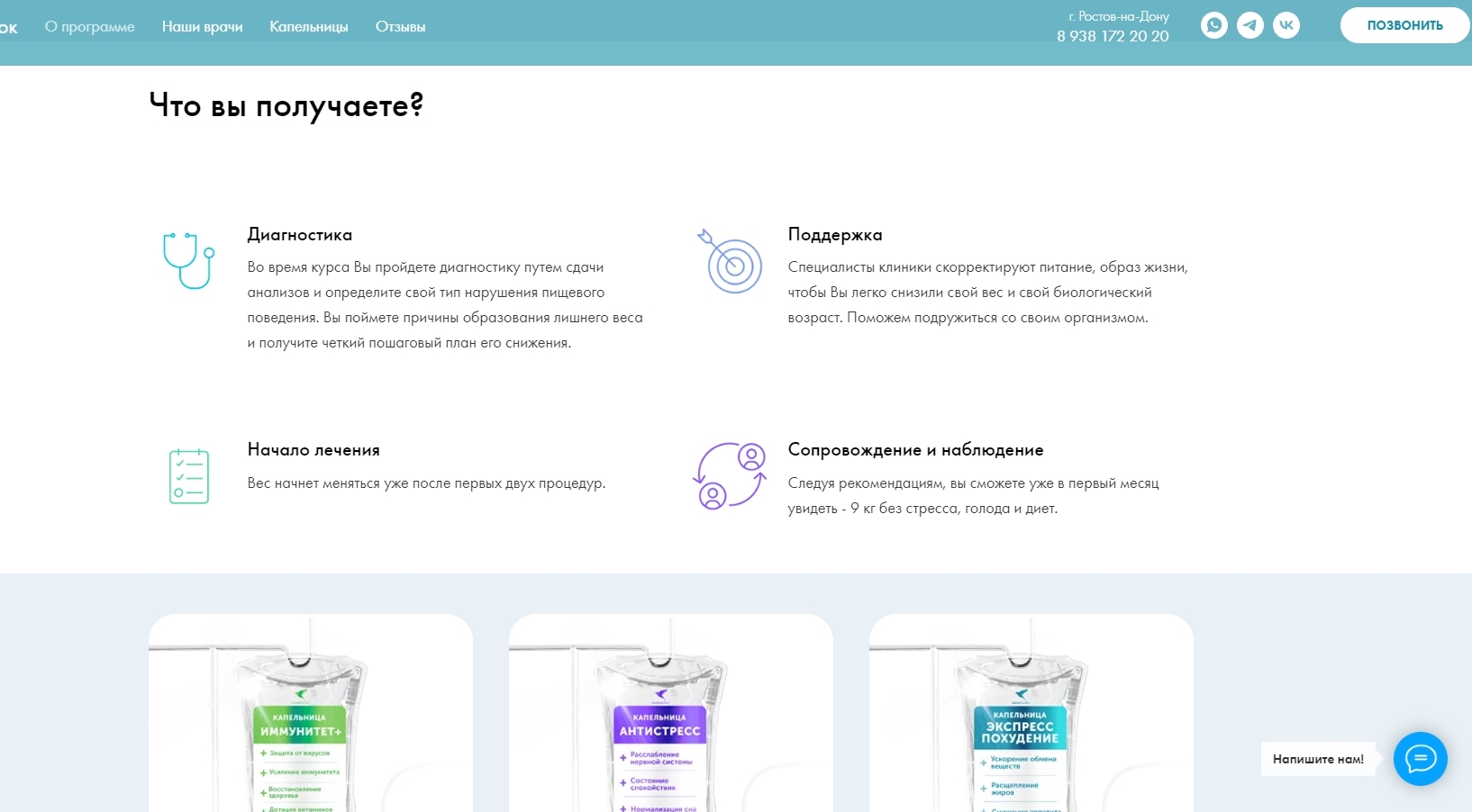 Клиент обратился к нам для создания сайта (копия франшизы). Клиника занимается капельной терапией. Ведется прием врача эндокринолога, диетолога и даже ортопед (плазмолифтинг суставов).